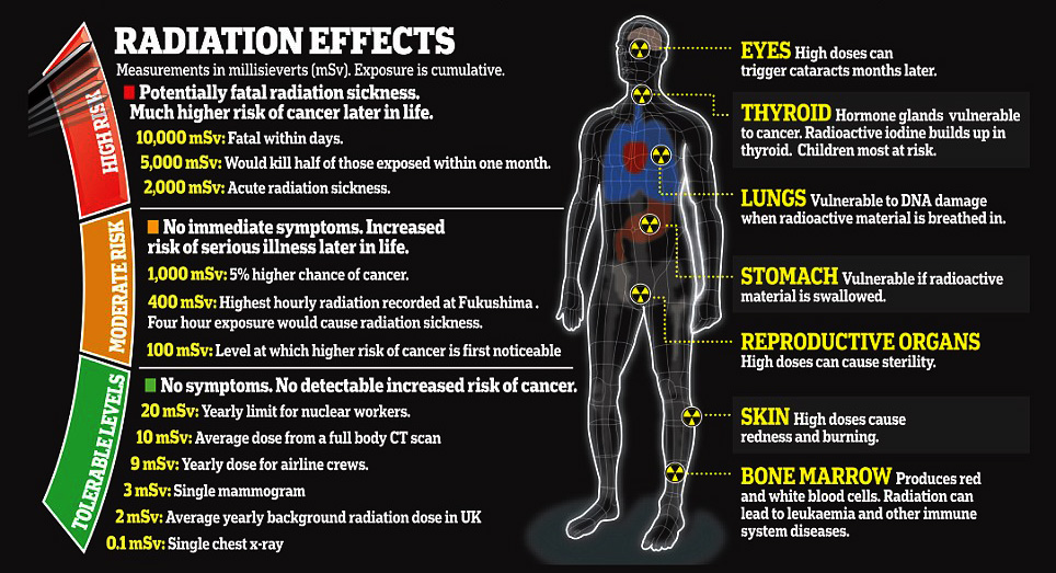 ที่มา: Fukushima nuclear disaster , effects of radiation and maps of radiation readings. (2011, June 25). Retrieved from Noor’s List: https://noorslist.wordpress.com/tag/japan/